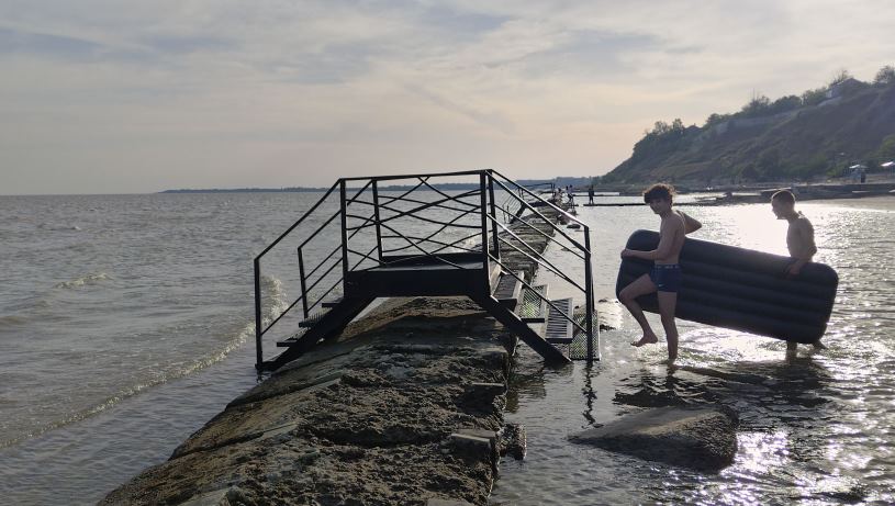 Центральный пляж пережил нелегкие времена: сперва разрушения ноябрьской непогоды 2023 года, затем ледяной шторм прошедшей зимы. Но сейчас последствия этих природных катастроф устранены. Восстановлена инфраструктура: лавочки, урны, теневые грибки. В акватории пляжа появились два новых переходных мостика, поплавковые канаты и буи глубины. Завезен песок.