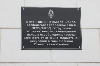 Почетное право ее открыть предоставили ветерану органов безопасности подполковнику Виктору Гришину. В Таганроге, на здании на улице Петровской, где перед Великой Отечественной