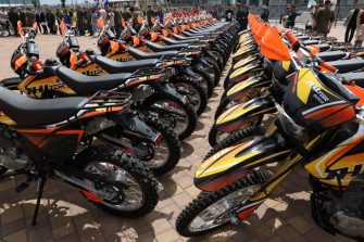 Глава донского региона Юрий Слюсарь передал 100 кроссовых мотоциклов подразделениям Южного военного округа. Мероприятие прошло 28 июня в ростовском парке «Левобережный».