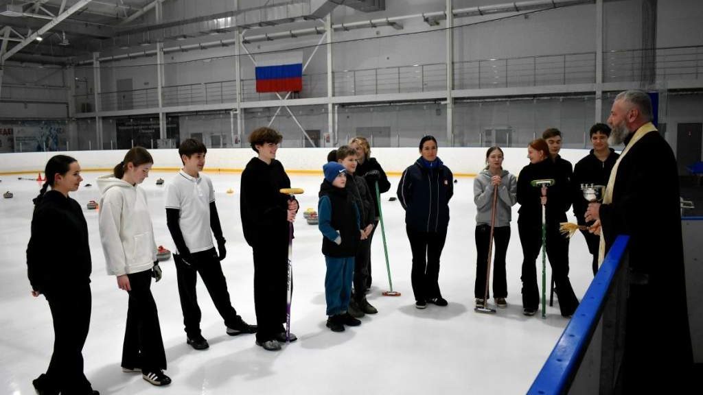 Батюшка благословил сотрудников спорткомплекса «Авангард», тренеров СШОР-13, а также спортсменов, у которых в это время проходили тренировки, пообщался со многими из них, в частности, с кёрлингистами.