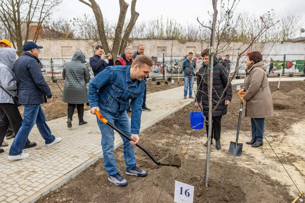 Первый заместитель губернатора Ростовской области Алексей Господарев с сотрудниками Минэкономразвития региона и администрации Таганрога участвовал в высадке декоративных вишен для будущего Гимназического сада, расположенного на территории Таганрогского музея-заповедника.