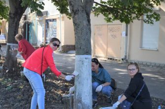 Осенняя побелка стволов деревьев помогает им легче пережить зимние трудности: защищает от обледенения, солнечных ожогов и замедляет распускание почек.