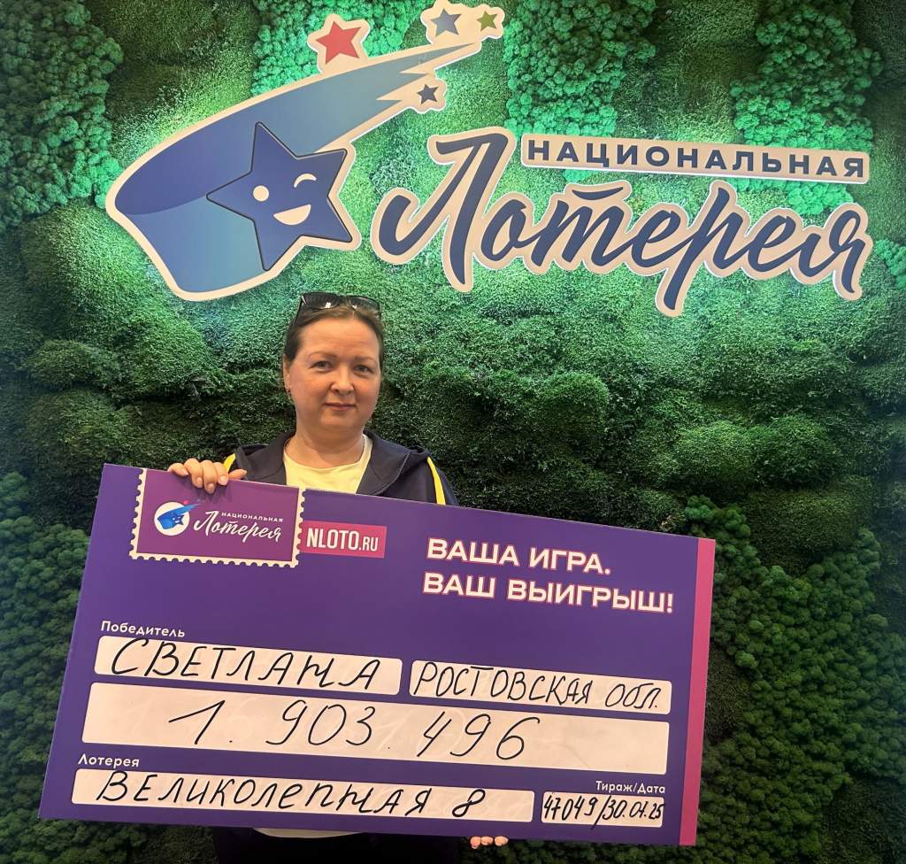 Светлана, домохозяйка из Ростовской области, и её сын Александр стали победителями онлайн-лотереи «Великолепная 8», выиграв почти 2 миллиона рублей. Об этом сообщила пресс-служба бренда всероссийских государственных лотерей «Национальная Лотерея», организованных Минфином России.