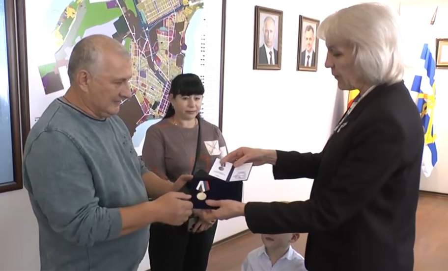 Накануне праздника глава Таганрога Светлана Камбулова вместе с представителями фонда «Защитники Отчества» вручила жителю города Василию Хубиеву медаль общественного признания «Отец солдата».