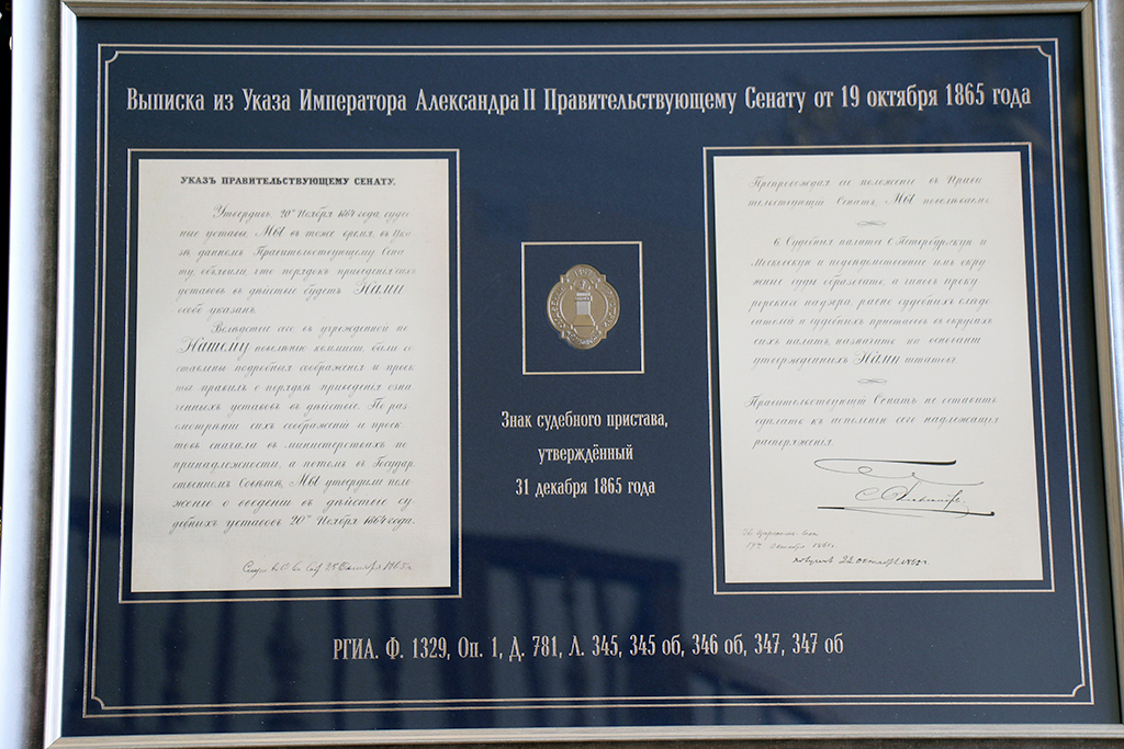 Таганрогский музей-заповедник получил в дар ценные исторические артефакты, связанные с истоком судебной системы России. В фонды музея переданы выписка из указа императора Александра II от 19 октября 1865 года и нагрудный знак судебного пристава, утвержденный 31 декабря того же года, что стало значимым событием в год 160-летия института судебных приставов.