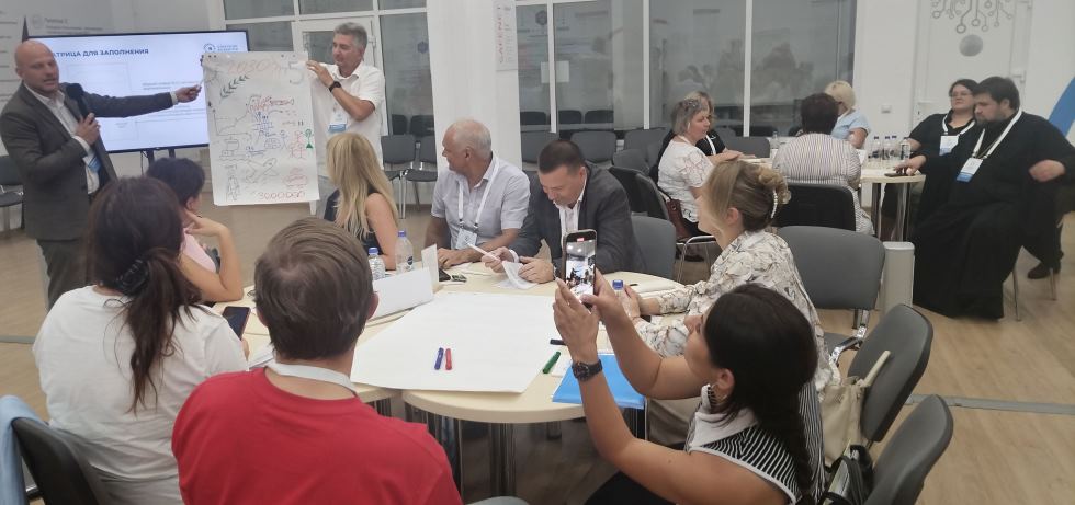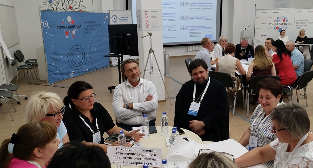 70 участников сели за семь круглых столов, наибольшее число из них – 12 человек – объединила тема «Экологическое благополучие». Глава города Светлана Камбулова, благочинный приходов Таганрогского округа, настоятель Георгиевского храма иерей Борис Гущин и еще 8 человек обсуждали ключевую проблему, сформулированную так: «Реализация потенциала каждого человека, развитие его талантов, воспитание патриотичной и социально ответственной личности». За остальными пятью столами велись мозговые штурмы по направлениям: «Сохранение населения, укрепление здоровья и повышение благополучия людей, поддержка семей», «Комфортная и безопасная среда для жизни», «Устойчивая и динамичная экономика», «Технологическое лидерство», «Цифровая трансформация государственного и муниципального управления, экономики и социальной сферы».