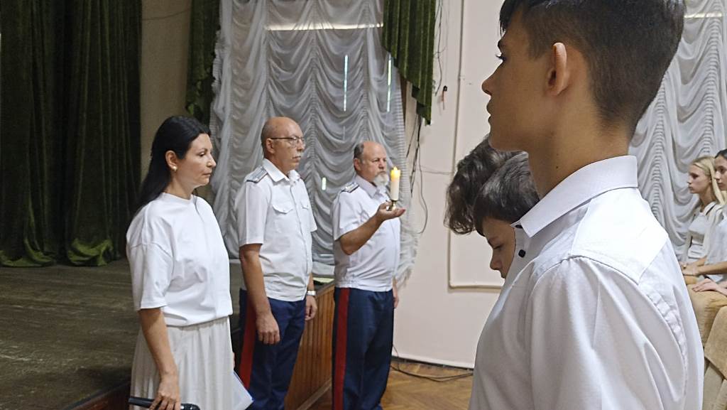 3 сентября казаки ГКО «Таганрогское» приглашению руководства Молодежного центра провели «Урок мира» для учащихся 6-7 классов школы № 10.