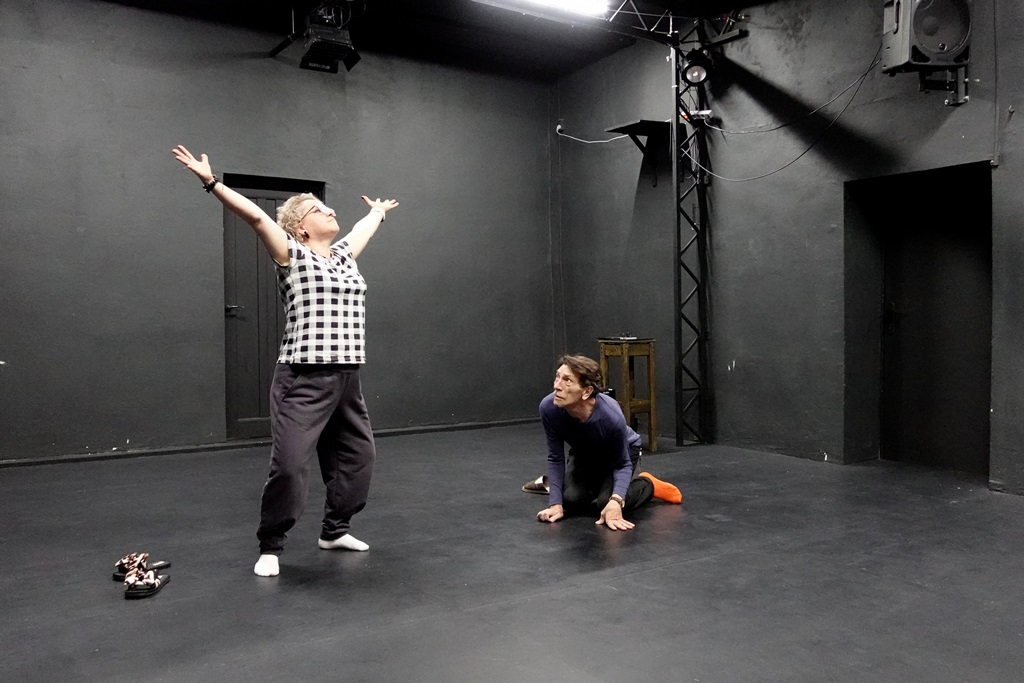 Берем метафору, усугубленную гротеском, и складываем сценарий. В процессе игры важно чувствовать партнеров буквально «кожей», взаимодействовать. Не «перетянуть одеяло», не потерять связь с другими персонажами. А действие должно быть не затянуто и не стремительно – тогда зритель успевает настроиться, и не скучает. Как они это делают — неведомо. Подозреваю, при всех известных им «вводных» они и сами не всегда знают, как это происходит.