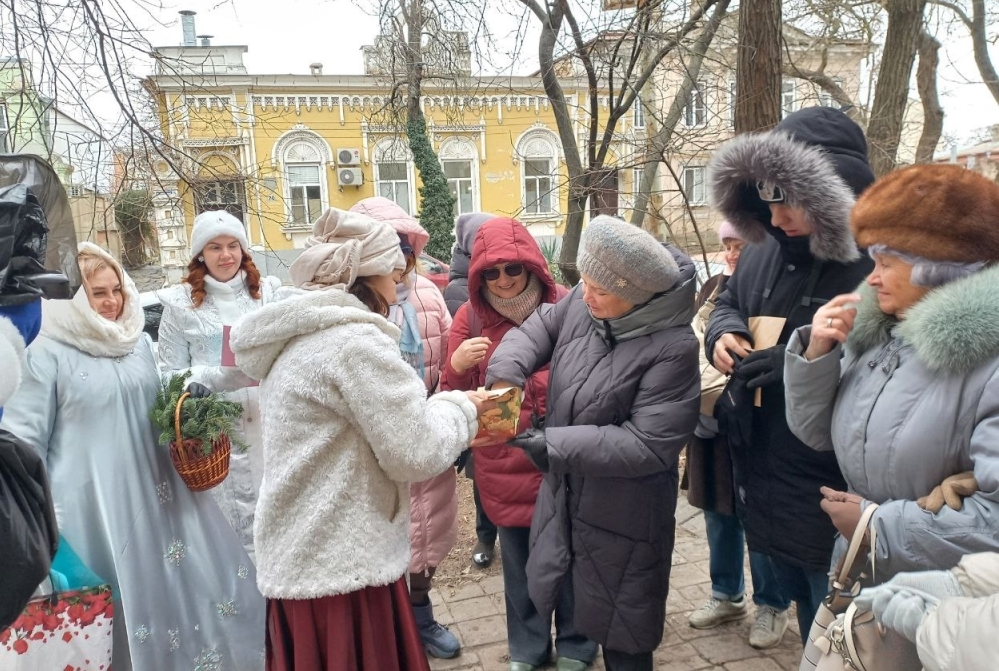 26 декабря Таганрогский художественный музей провёл заключительную в нынешнем году пешеходную экскурсию «Прогулка по старому кварталу» с новогодним акцентом. Несмотря на морозную погоду, участники смогли погрузиться в праздничную атмосферу и узнать о традициях разных народов, населявших город.