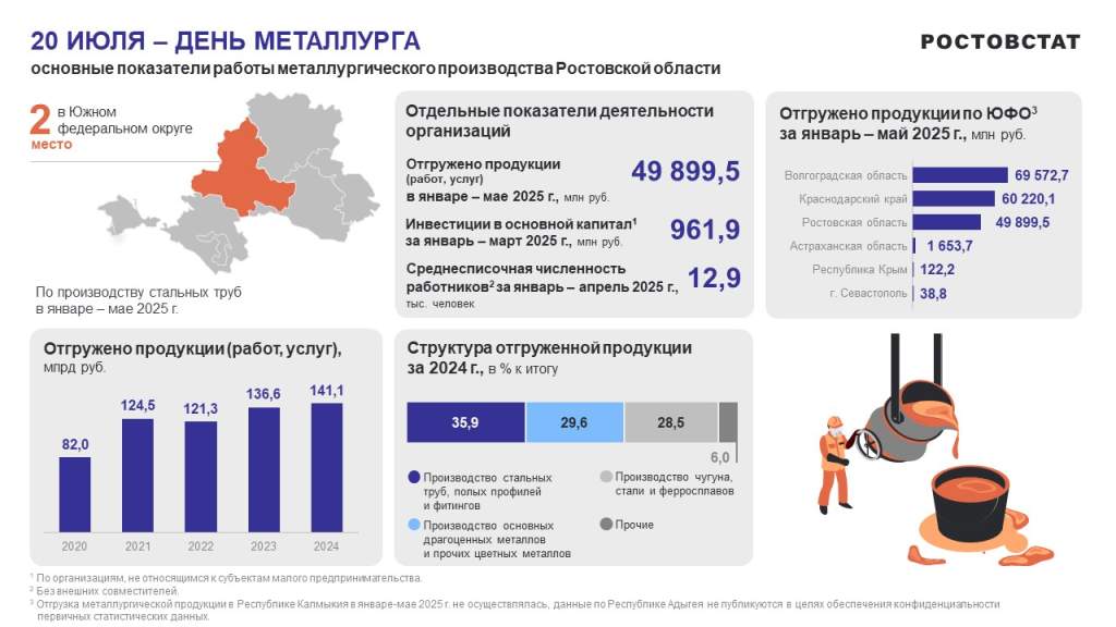 Инфографика и данные предоставлены Территориальным органом Федеральной службы государственной статистики по Ростовской области (Ростовстат), фото пресс-службы АО «ТАГМЕТ»