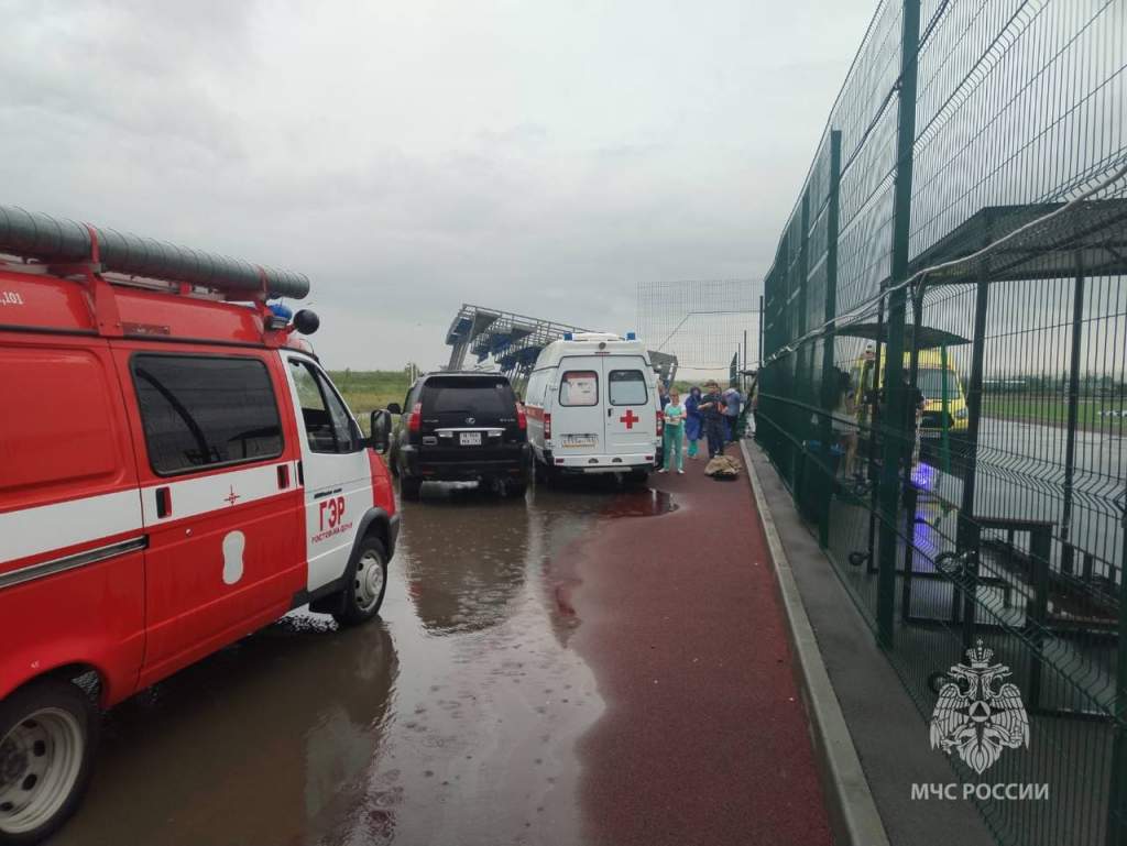 На стадионе Гребного канала проходили соревнования по футболу среди детей 2010 года рождения, играли команды Ростова и Батайска. На трибунах находились порядка 30 человек.