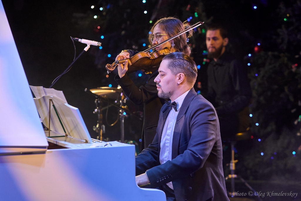 На первом в нынешнем году концерте, который маэстро Топольский и его друзья и коллеги провели в Городском ДК, было несколько сюрпризов. Так, наряду с музыкантами, на сцене, с краю, находилась огромная, под потолок, ярко украшенная новогодняя елка. Менее приятной неожиданностью стало то, что солистка-вокалистка Мария Логинова (сопрано) в этот вечер оказалась не в состоянии петь. Об этом публике вынужден был сообщить сам Даниил Топольский, напомнивший, что человеческий голос – это самый хрупкий музыкальный инструмент.