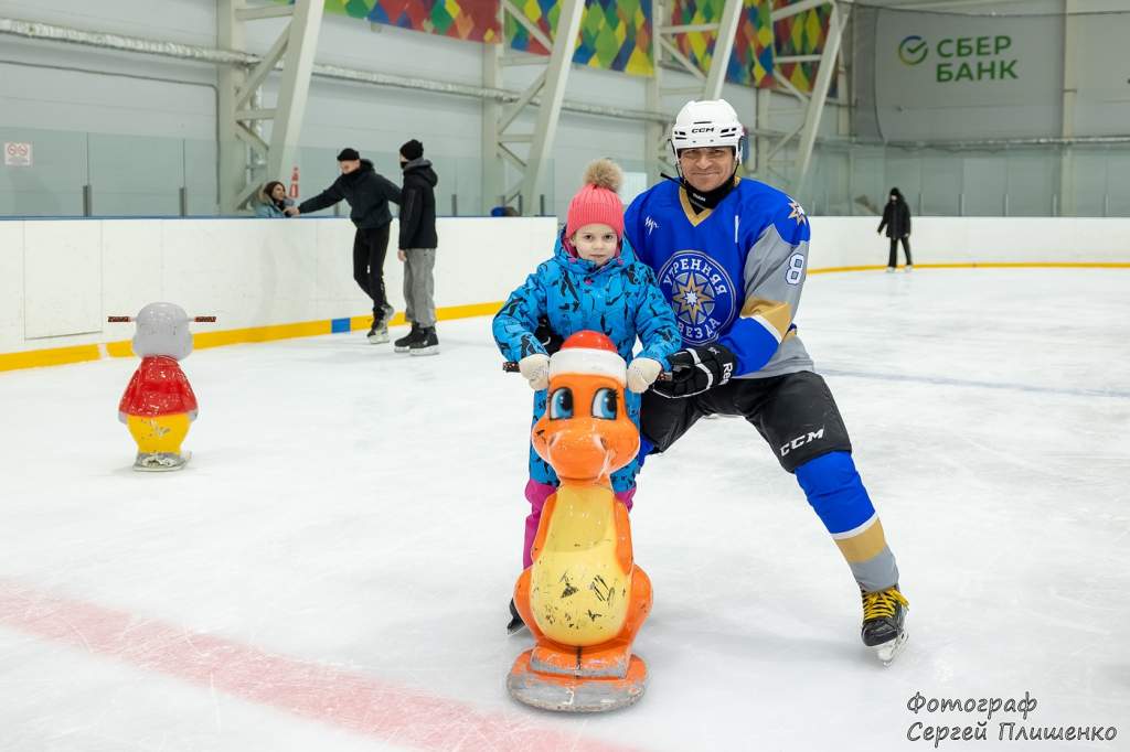 В программе приняли участие хоккеисты местных клубов «Торнадо» и «Утренняя звезда», которые провели для ребят мастер-класс по катанию на коньках. Особенным гостем стал уроженец Таганрога, актер театра и кино Павел Деревянко, известный поддержкой социальных инициатив в родном городе.