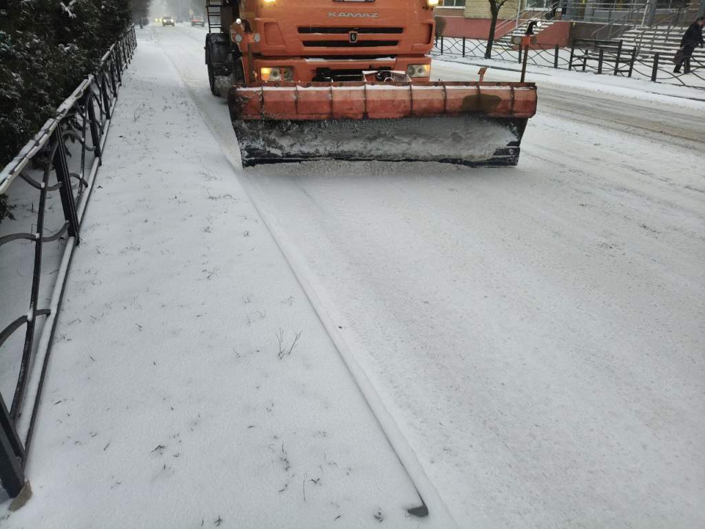 Работы по расчистке дорог и тротуаров от снега велись во всех районах города с помощью 9 единиц спецтехники, а также вручную — 58 сотрудников коммунальных предприятий очищали пешеходные зоны и остановки общественного транспорта.