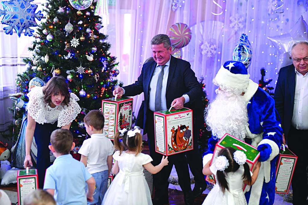 В городском Доме культуры у елки детей металлургов ждали утренники. Поздравления в эти дни получили и воспитанники двух подшефных детских учреждений, а также учащиеся таганрогских школ, участвовавшие в конкурсах и проектах 2025 года.