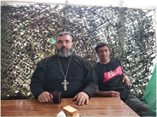Среди гостей штаба «Неравнодушных» на КПП Весело-Вознесенка часто можно встретить священнослужителей. С первых дней волонтеров поддерживают священники из Таганрога: иерей Павел Дудоладов, иерей Георгий Канча, протоиерей Вадим Яблоновский и благочинный таганрогского округа иерей Борис Гущин. Все они оказывают волонтерскому движению материальную и духовную помощь. Кроме того, иерей Георгий Канча лично был волонтером на КПП в самые сложные месяцы – он приезжал и трудился в нейтральной зоне каждую ночную смену.