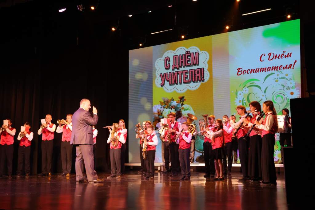 Кульминацией торжественного мероприятия стало награждение педагогов. Лучшим работникам образования были вручены ведомственные и муниципальные награды, а подарком для всех присутствующих стала яркая концертная программа.