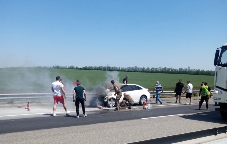 25 мая на трассе под Таганрогом горел легковой автомобиль. Об этом сообщает пресс-служба регионального ГУ МЧС.
