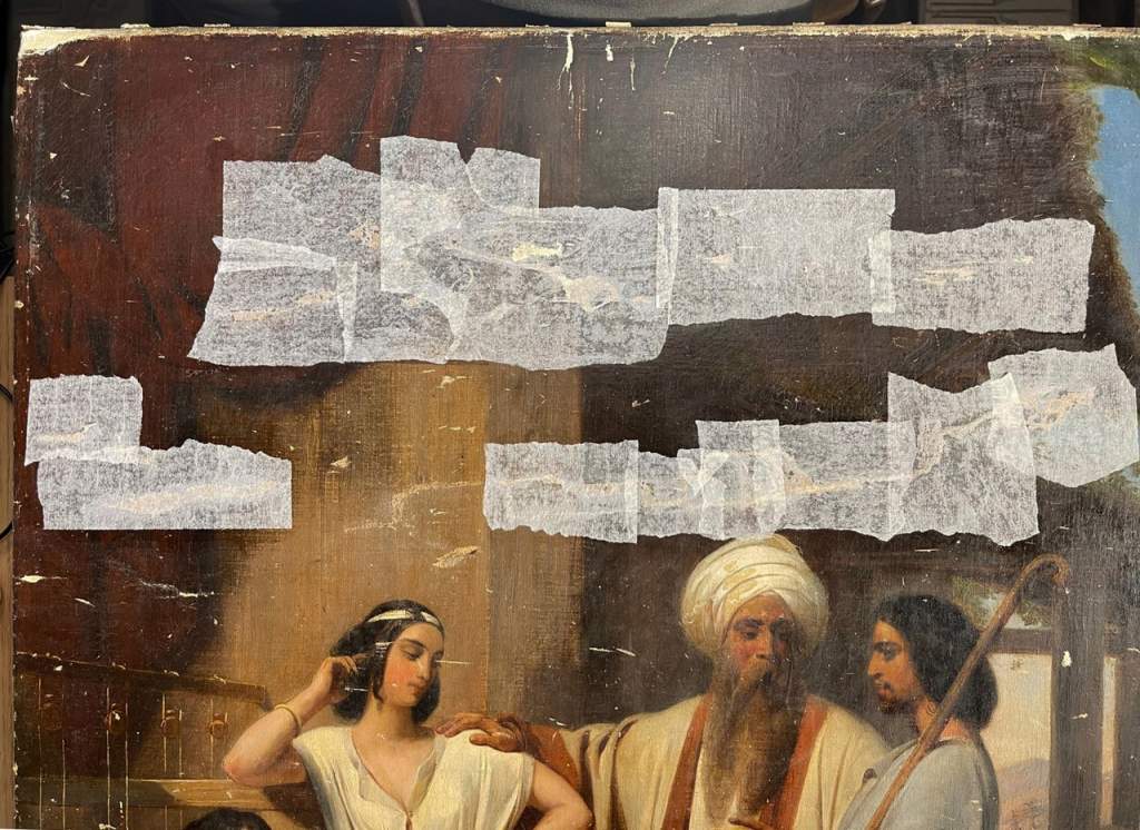 9 августа два сотрудника Русского музея приступили к противоаварийным работам. Это Марат Дашкин, заведующий отделом реставрации живописи, и Сергей Сирро, руководитель отдела технологических исследований. На первом этапе они фотографировали пострадавшие произведения. Затем Марат Дашкин приступил к консервации проблемных участков на картинах — укрепляет их слабым раствором осетрового клея и заклеивает папиросной бумагой. Всё должно быть завершено к пятнице, 11 августа.