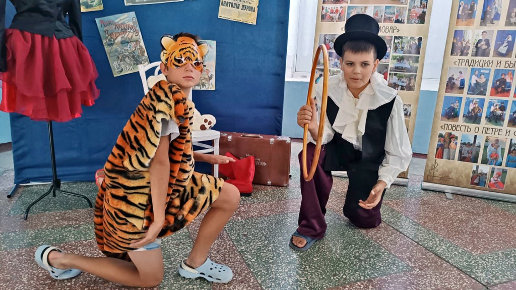 Выставку привезла в лагерь научный сотрудник музея Анна Петрухнова. Книги и фотографии, рассказывающие о цирковой династии Дуровых, уникальный костюм Анатолия Леонидовича Дурова (реконструкция), цирковой реквизит и яркие костюмы стали изюминкой мероприятия. А чтобы погружение было полным, ребята примерили на себя цирковые костюмы, разыграли клоунские репризы и походили по канату.