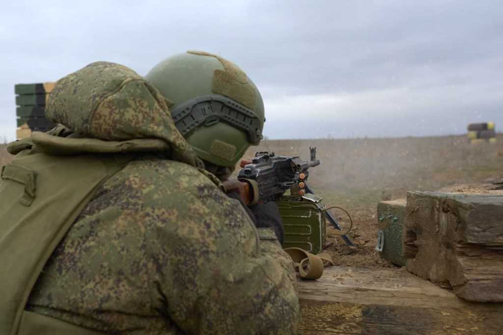 Новобранцы Южного военного округа, впервые подписавшие контракт с Министерством обороны, отрабатывают стрельбу из пулемета Калашникова (ПКМ) на занятиях по огневой подготовке. Об этом сообщил заместитель губернатора Ростовской области Дмитрий Водолацкий.