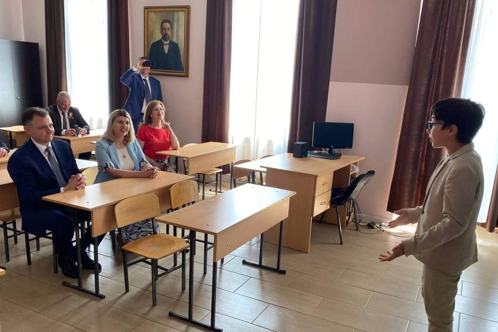 Он передал в подарок коллективу школы юбилейные издания, посвящённые творчеству писателя, а также памятную медаль, а также пригласил лучших учеников школы посетить Ростов и Таганрог, где родился и рос великий писатель.