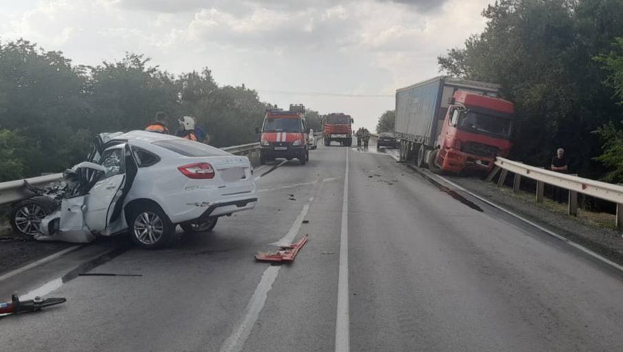 Авария произошла 7 июля в 16.40 на 152 км автодороги Ростов-Ставрополь, в Песчанокопском районе. 53-летний водитель управлял «КамАЗом» с прицепом. Во время движения у большегруза лопнуло переднее левое колесо. После этого фура вылетела на встречку и врезалась в «Лада Гранта».