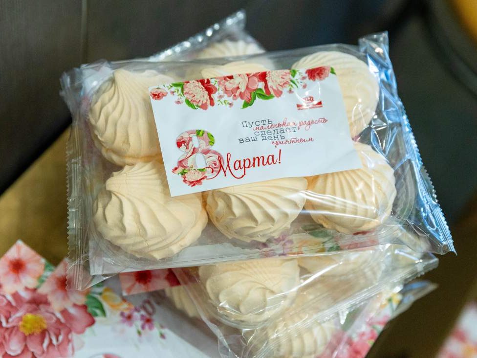 Особый знак внимания – подарки, подготовленные специально для сотрудниц ТКЗ. Артисты преподнесли девушкам и женщинам завода наборы нежного зефира, изготовленные по заказу предприятия, и персональные открытки с поздравлением от Генерального директора «Красного котельщика» Михаила Клугмана. В них – теплые слова в адрес виновниц торжества от имени всех мужчин завода.