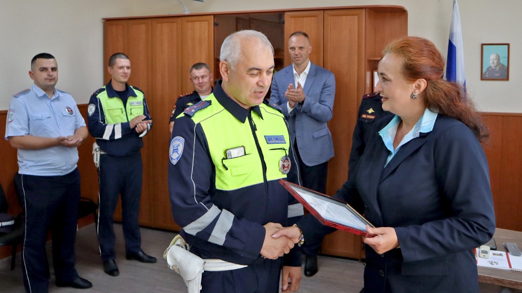 Председатель городской Думы – глава города Таганрога Инна Титаренко и председатель постоянной комиссии городской Думы по здравоохранению, социальной политике, физкультуре и спорту Владимир Карагодин вручили ряду сотрудников ОГИБДД УМВД России по г. Таганрогу Благодарственные письма городской Думы.