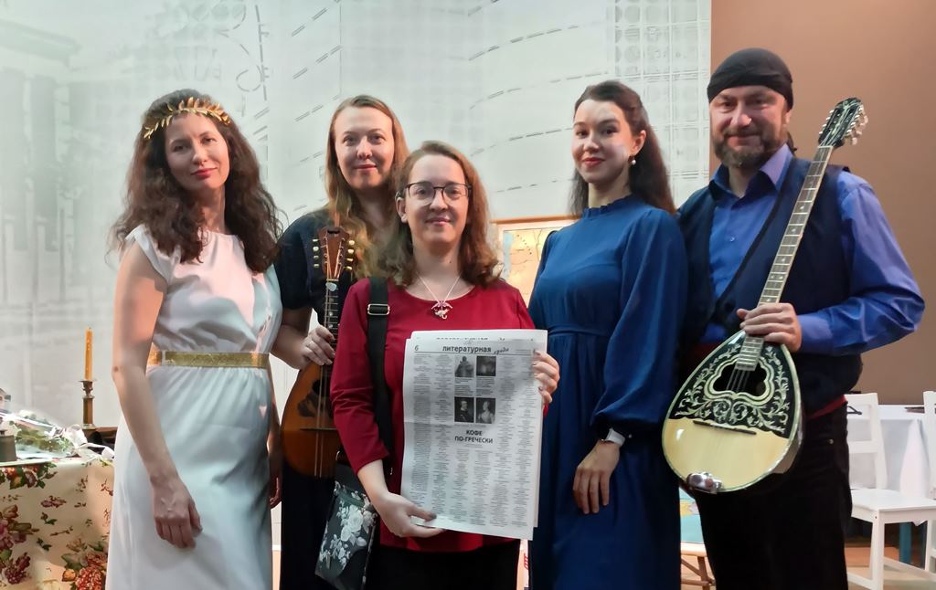Сцена вторая, из которой мы пока еще не узнаем рецепт приготовления настоящего кофе по-гречески. Действие происходит в Санкт-Петербурге, в аустерии (в переводе с греческого – трактир) «Четыре фрегата». Хозяйка трактира – Айна. Здесь история капитана Варвакиса становится известной Григорию Потемкину. Передать дух заведения было бы невозможно без музыкантов Михаила Бурлакова (бузуки) и Виктории Роговой (мандолина), певицы Валентины Ястремской (сопрано), греческих танцев студии «Эллас».