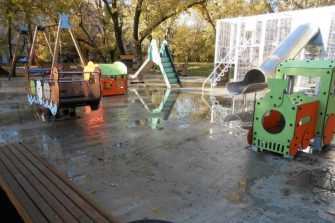 Жители Западного микрорайона обеспокоены состоянием детской площадки в Калужском проезде, 9 – вместо резинового покрытия здесь установлено бетонное, представляющее