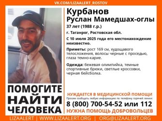С 10 июля о местонахождении Руслана Курбанова ничего неизвестно. Предположительно, мужчина может находиться в Ростове. К поискам 37-летнего Руслана Курбанова подключились