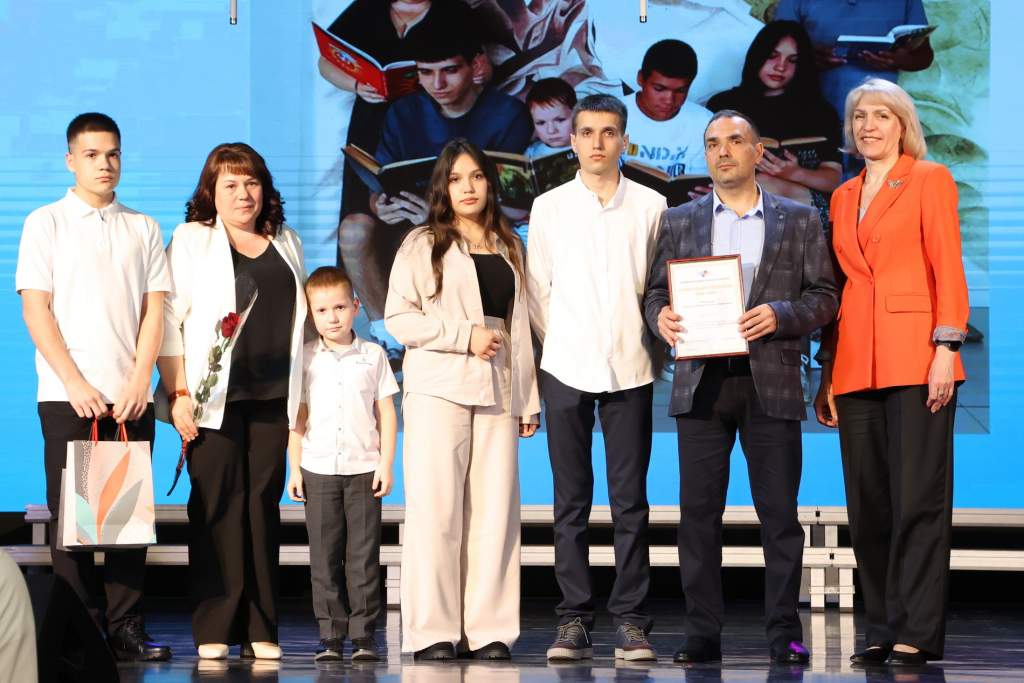 Награждена семья Кузюбердиных. Юлия Викторовна — директор общественного благотворительного фонда «Путь воина», Дмитрий Викторович — директор ООО «Парус». В семье воспитываются четыре дочери, старшие окончили школу с золотыми медалями, у младших это еще впереди.