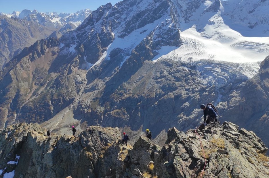 Это мероприятие запланировали на начало октября, чтобы обучить новичков и укрепить знания у альпинистов с опытом восхождений. На скальных занятиях в горах Северной Осетии с нижней страховкой, с использованием специальных оттяжек группа тренировалась в секторе с названием «Водопад» на маршрутах «Спусковой», «Зеленый шум». Например, участники будущего первопрохождения учились правильно двигаться по «сыпухе» — мелкой осыпи, съезжающая по склону вниз.