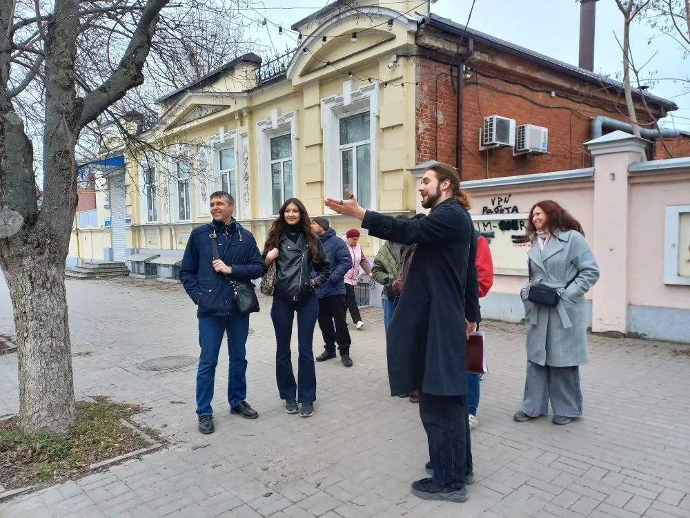 Очередная экскурсия «Город ста национальностей, или Культурная палитра Таганрога» прошла сегодня, 21 марта. Участники прошли по центральным улицам — Александровской, Фрунзе, Петровской и Греческой, а также по переулкам Итальянскому, Тургеневскому и Добролюбовскому. Гид рассказал о знаменитых жителях, их домах, предпринимательской деятельности и роли в общественной жизни, позволив прочувствовать уникальную многонациональную атмосферу старого портового города.