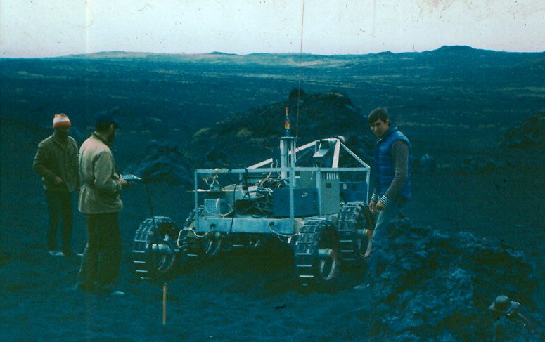 «Нам поставили крайне необычную в то время задачу — создать робота, который смог бы без участия человека-оператора двигаться в заданную точку по заранее неисследованной пересеченной местности. Мы такую систему создали, провели несколько её успешных испытаний на специальных полигонах на Камчатке возле вулкана Толбачек, в радиусе от которого более 20 км все покрыто пеплом. Место идеально подходило для имитации марсианской поверхности. Созданная система обеспечивала сбор информации о поверхности, по которой происходило движение, с помощью сканирующего лазерного дальномера, на основе информации создавалась цифровая карта местности», — поясняет Игорь Каляев.