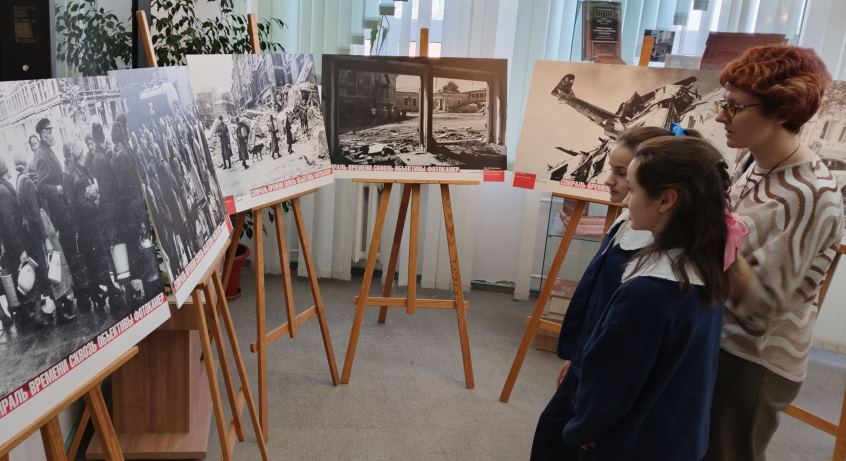 В Чеховской библиотеке Таганрога прошли открытие фотовыставки «Летописцы истории. Спираль времени сквозь объективы фотокамер» и встреча с городской молодежью. Оба мероприятия были посвящены 80-летней годовщине Победы в Великой Отечественной войне и Году защитника Отечества.