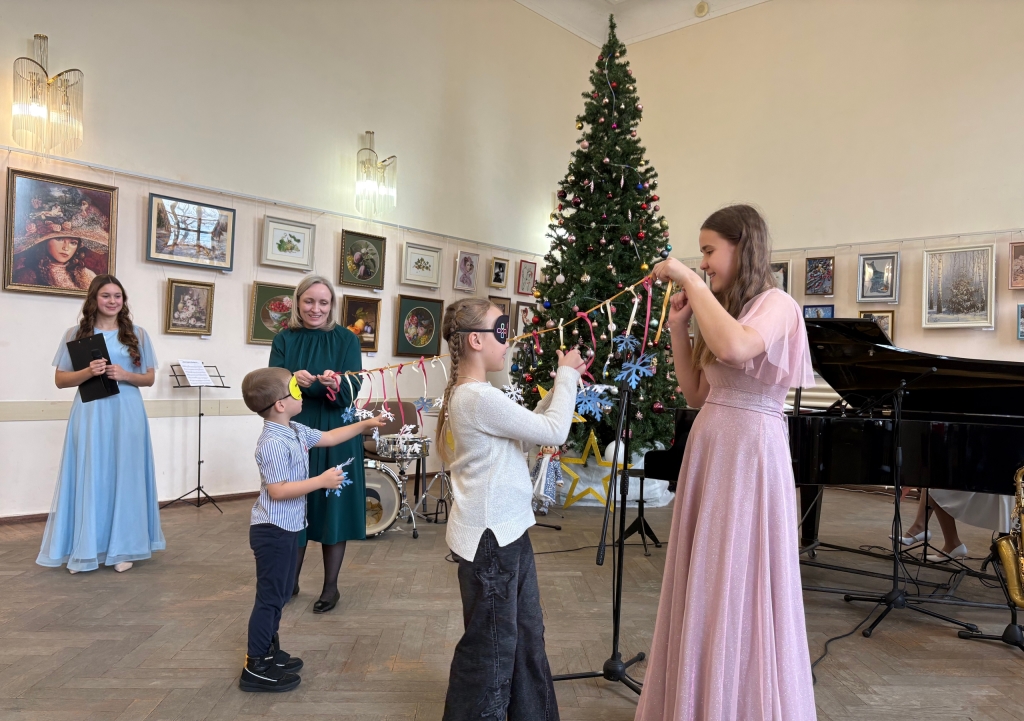Чудесную атмосферу праздника создавали также игры, в которых активно участвовали зрители, в том числе и я. Мы отгадывали рифмы, выстраивались в нужном порядке, чтобы сложить строчку из песни, по хлопкам ведущей озвучивали часы-ходики: тик-так, тик-так… Чтобы призвать дух русской зимы и вызвать снег, помощницы ведущей Алиса Стрельцова и Елизавета Курникова устроили весёлое состязание. Девочки держали мишуру, на которой были развешены большие узорчатые снежинки, а два участника игры с завязанными глазами старались снять с мишуры как можно больше снежинок. Игровое действо сопровождалось танцевальной музыкой и ободрительными аплодисментами.