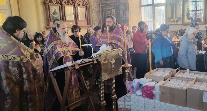 В Никольском храме Таганрога причастие проходило на три чаши (причащали одновременно все три священника), а после причастия в своей проповеди настоятель храма иеромонах Маврикий (Звягинцев) напомнил прихожанам о том, что и праведный Иоанн Кронштадтский, и многие другие святые призывали христиан причащаться, соединяясь со Христом, как можно чаше.