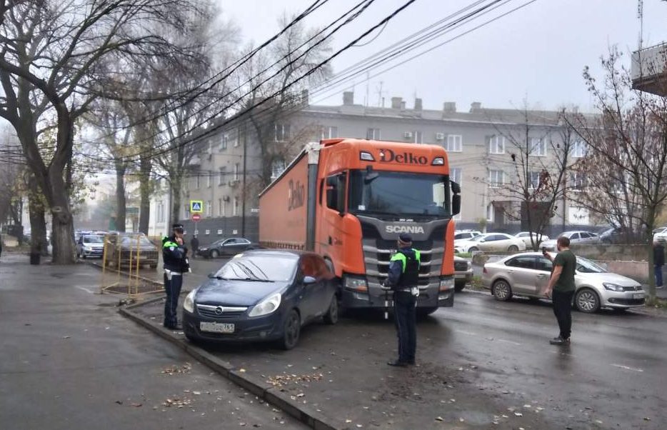 По свидетельствам очевидцев, водитель большегруза Scania неудачно совершил маневр и задел Opel, стоящий на парковке. Пострадавших в аварии нет, транспортные средства получили незначительные повреждения.