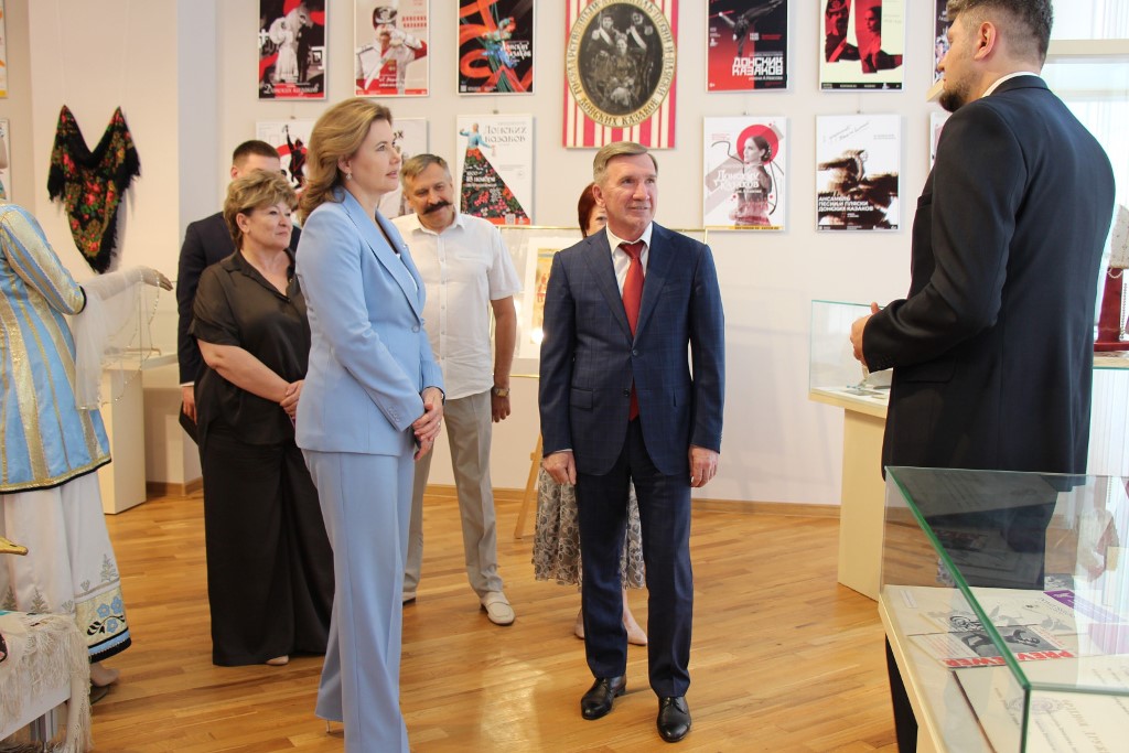 Торжественное открытие выставки состоялось 17 июля. Среди гостей был первый заместитель губернатора Ростовской области Игорь Гуськов, который отметил, что свое 90-летие этот ансамбль отметит в следующем году, а выставка в Таганроге – «первая ласточка», первое из мероприятий, посвященных предстоящему юбилею. Он также поделился воспоминаниями о том, как присутствовал на концерте этого творческого коллектива в столице Беларуси Минске, как благодарная публика стоя аплодировала нашим землякам в течение десяти минут.