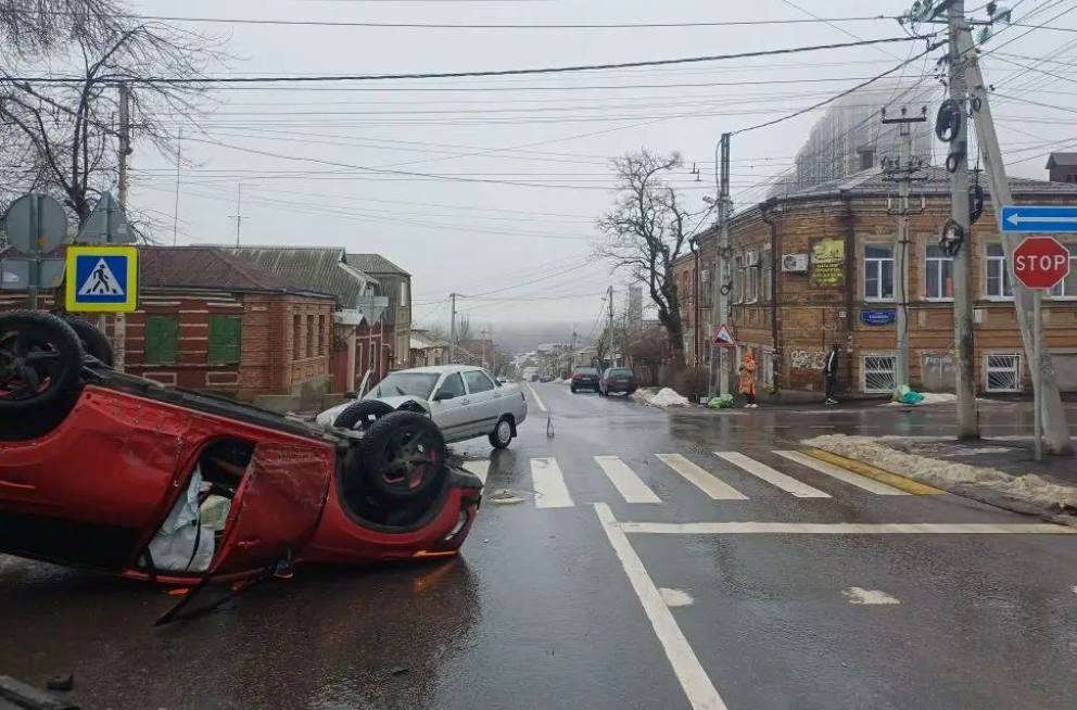 15 февраля в Ростове произошло дорожно-транспортное происшествие, в результате которого один из автомобилей перевернулся. По предварительной информации, авария случилась из-за того, что водитель не уступил дорогу на перекрестке.