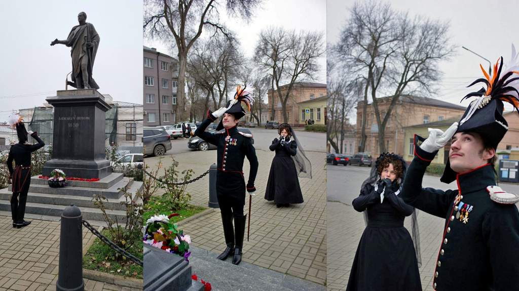Историки-реконструкторы побывали у таганрогской резиденции императора и возложили букет к его памятнику. И это не просто цветы! Писатель и драматург Степан Жихарев в своих «Записках современника» вспоминал о том, как тепло встречали русского государя в Германии в 1805 году: «…Дамы ввели в моду носить букеты под названием Александровских, которые собраны из цветов, составляющих по начальным буквам своих названий имя Alexander». В букет входили: Anemone (анемон), Lilie (лилия), Eichen (жёлуди), Xeranthenum (амарант), Accazie (акация), Nelke (гвоздика), Dreifaltigkeits blume (весёлые глазки), Epheu (плющ) и Rose (роза).