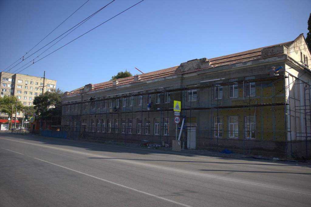 Ремонт здания Дома детского творчества ведется с мая этого года. Подрядчик капитально приводит в порядок фасад и кровлю. На сегодня выполнены работы: демонтаж старого слоя штукатурки; разборка кладки кирпича, подлежащей замене; замена оконных блоков; разборка кровельного покрытия и утепление фасада здания, нанесена цветная штукатурка на тыльной стороне фасада.