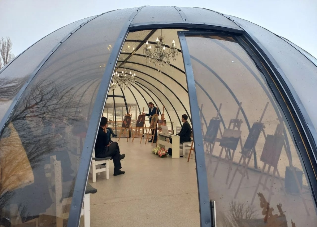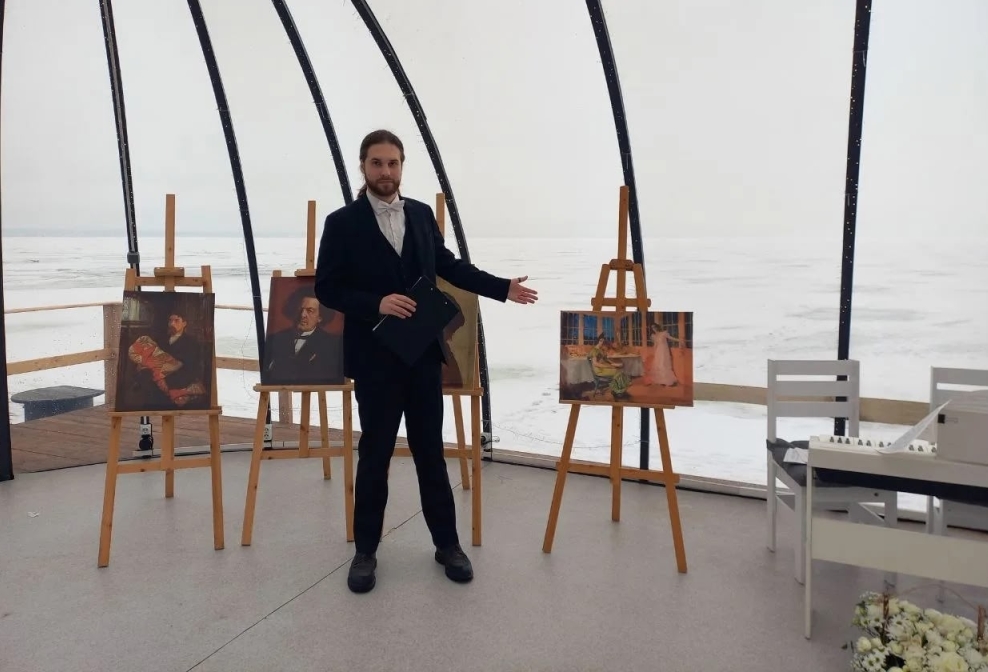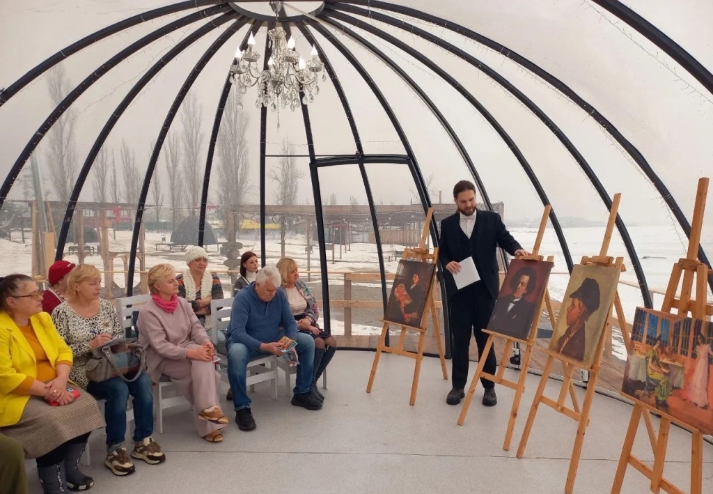 Участники смогли насладиться рассказом о дружбе А.П. Чехова с русскими художниками и другими творческими личностями под прозрачным куполом с видом на заснеженный Таганрогский залив.