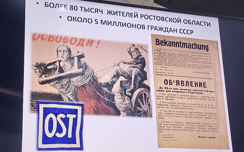 Совместными усилиями многих людей в Таганроге теперь создан и цифровой мемориал. На интерактивной карте – 312 мест в Германии, где использовались трудовые ресурсы, вывезенные из нашего города. Как отмечалось на мероприятии, многие из наших земляков либо вообще не вернулись в родное Отечество, либо по возвращении оказались в другом конце нашей великой страны… Интерес не только для историков представляют и опубликованные письма, посылаемые остарбайтерами родным, оставшимся на оккупированных территориях СССР – письма, подвергшиеся германской цензуре, но зато дожившие до наших дней.