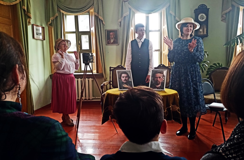 В театрализованном представлении Наталии Ермоленко был соблюдён даже принцип «Чеховского ружья». Гостиную украшал старинный фотоаппарат из фондов музея, про который Чехов мог бы сказать: «Нельзя ставить на сцене фотоаппарат, если никто не имеет в виду фотографировать из него. Нельзя обещать». И вот на сцене юноша-юрист из очерка – «страстный поклонник фотографии». И зрители улыбались ему в объектив, и «вылетала птичка».