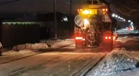 Работы по обработке противогололедными материалами магистралей, остановок общественного транспорта, подъездов к социально значимым объектам и ключевых перекрестков ведутся в круглосуточном режиме.