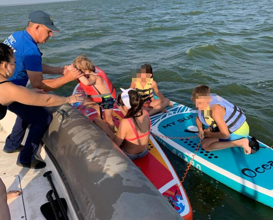 Во время очередного патрулирования акватории Таганрогского залива сотрудники ГИМС МЧС России увидели женщину и троих детей, дрейфующих на сапбордах. В море их унесло более чем на километр. Из-за сильного ветра выгрести к берегу пловцам не удавалось.