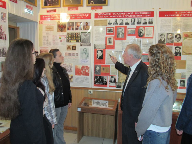 Студенты Таганрогского института имени А.П. Чехова посетили музей истории милиции города. В мероприятии приняли участие ветераны МВД: подполковник милиции в отставке Николай Андрющенко и председатель городского совета ветеранов уголовного розыска Сергей Калуцкий.